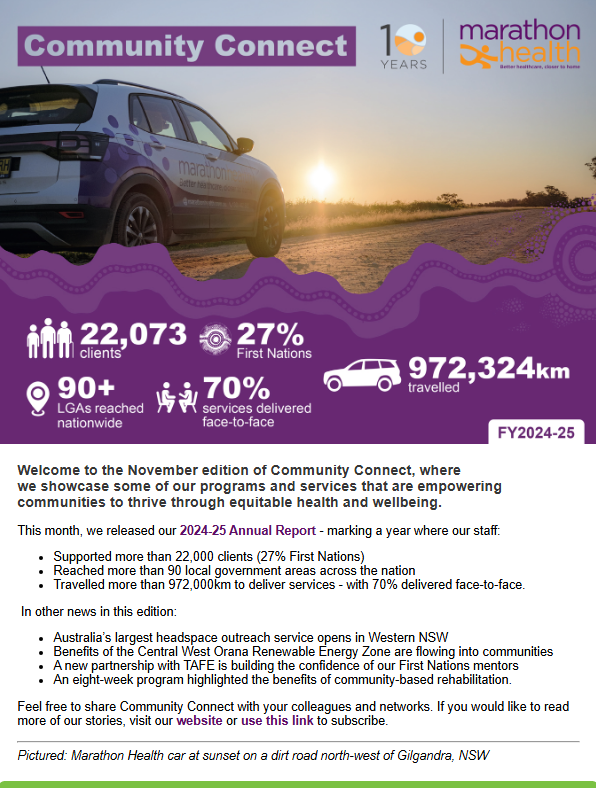 We also shine a light on some of the programs and services that are empowering regional communities to thrive through equitable health and wellbeing, including: